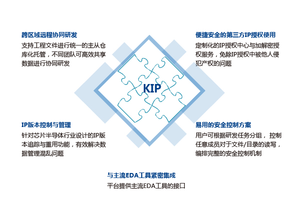 基于知識(shí)產(chǎn)權(quán)保護(hù)的協(xié)同研發(fā)與IP數(shù)據(jù)管理平臺(tái) 用戶友好的IP追溯與重用系統(tǒng),支持網(wǎng) 頁端操作,提供IP版本標(biāo)定,發(fā)布,重 用,文件倉(cāng)庫(kù)管理,主干分支操作,記 錄回滾,文件對(duì)比, IP加解密及授權(quán)管理等功能。